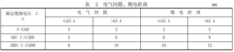 母線槽內(nèi)不同極性的裸露帶電導(dǎo)體之間以及它們與外殼之間的電氣間隙、爬電距離應(yīng)不小于表的規(guī)定。