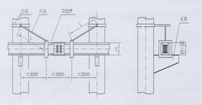 母線(xiàn)槽懸吊安裝母線(xiàn)檔吊式安裝兩安裝文架的距離不大于3m